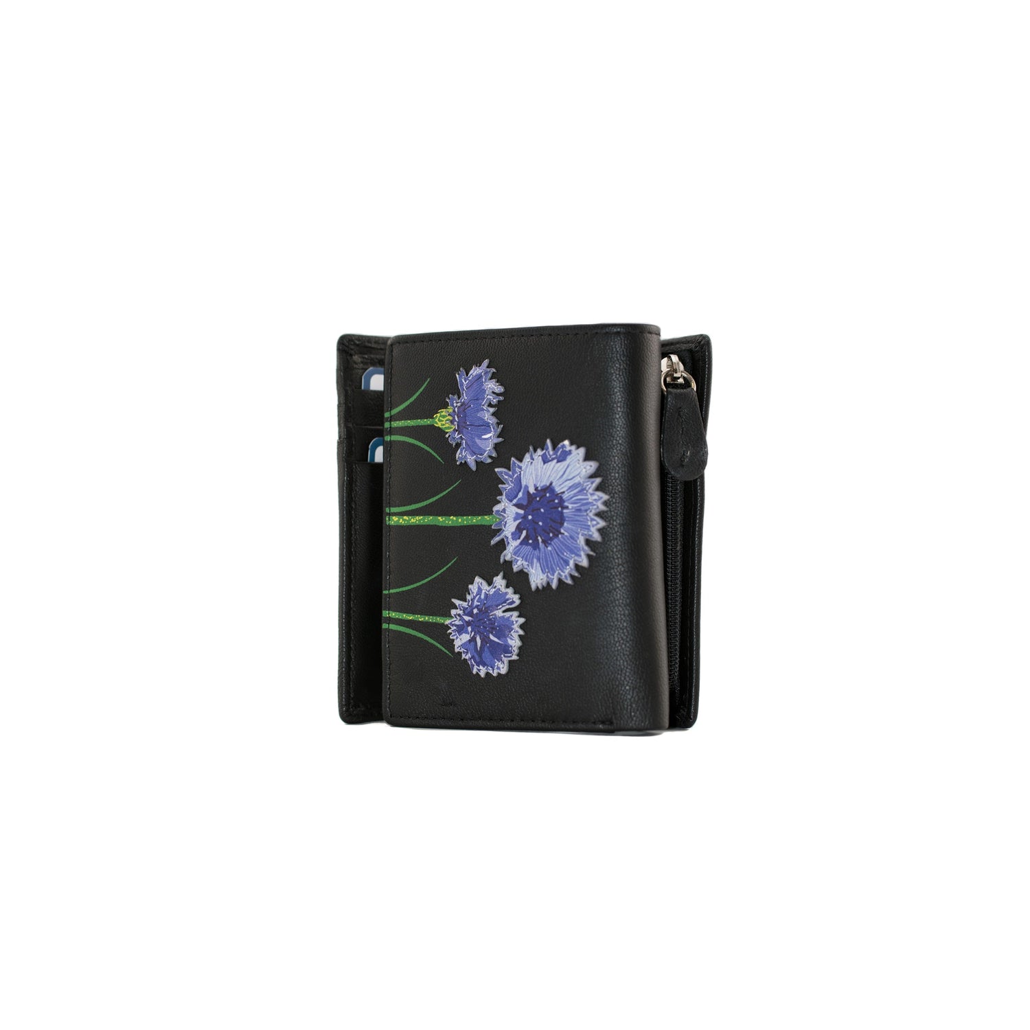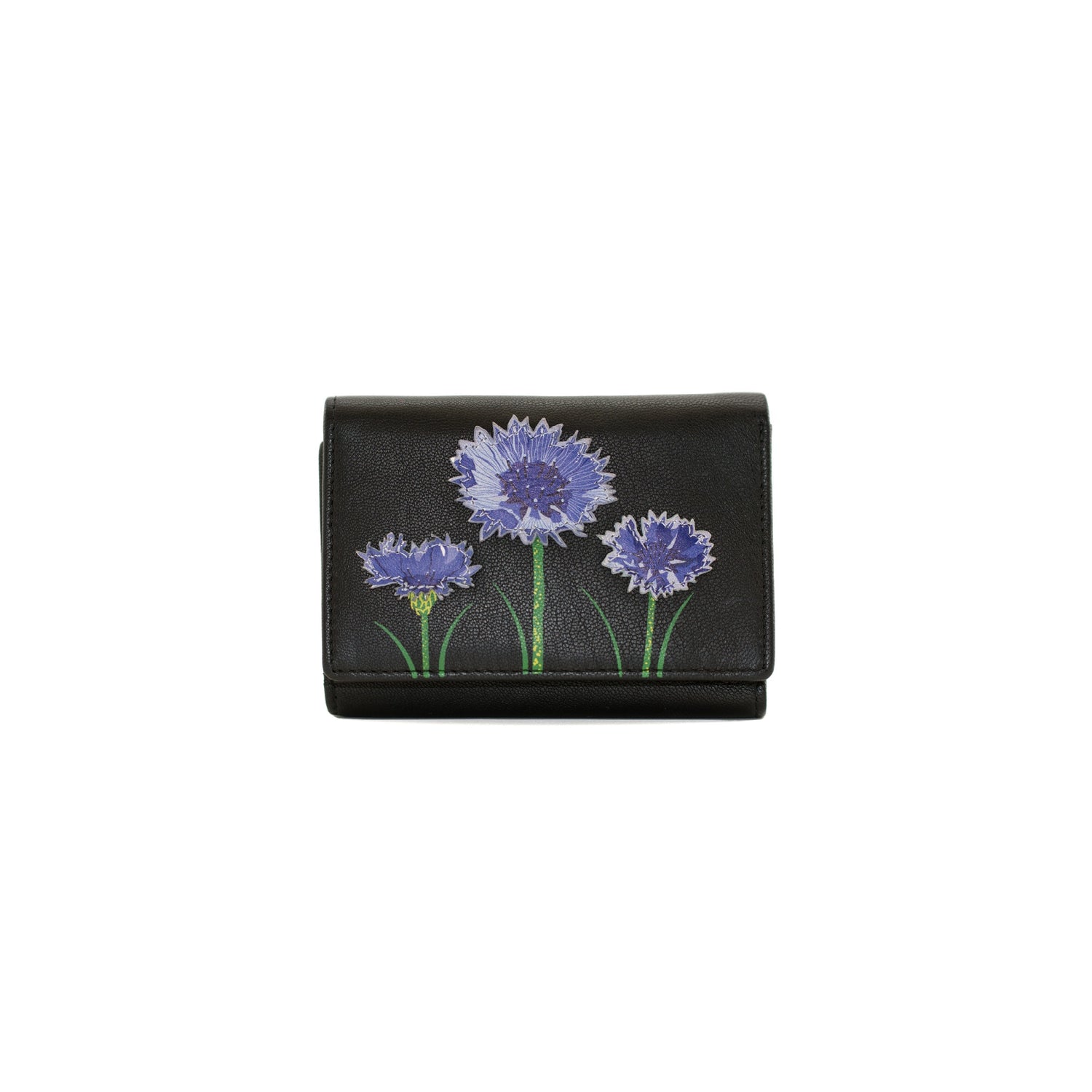 Created from beautiful smooth leather and decorated with cornflower applique motifs, this handy little purse from Mala Leather is perfect for smaller handbags and has everything you need.