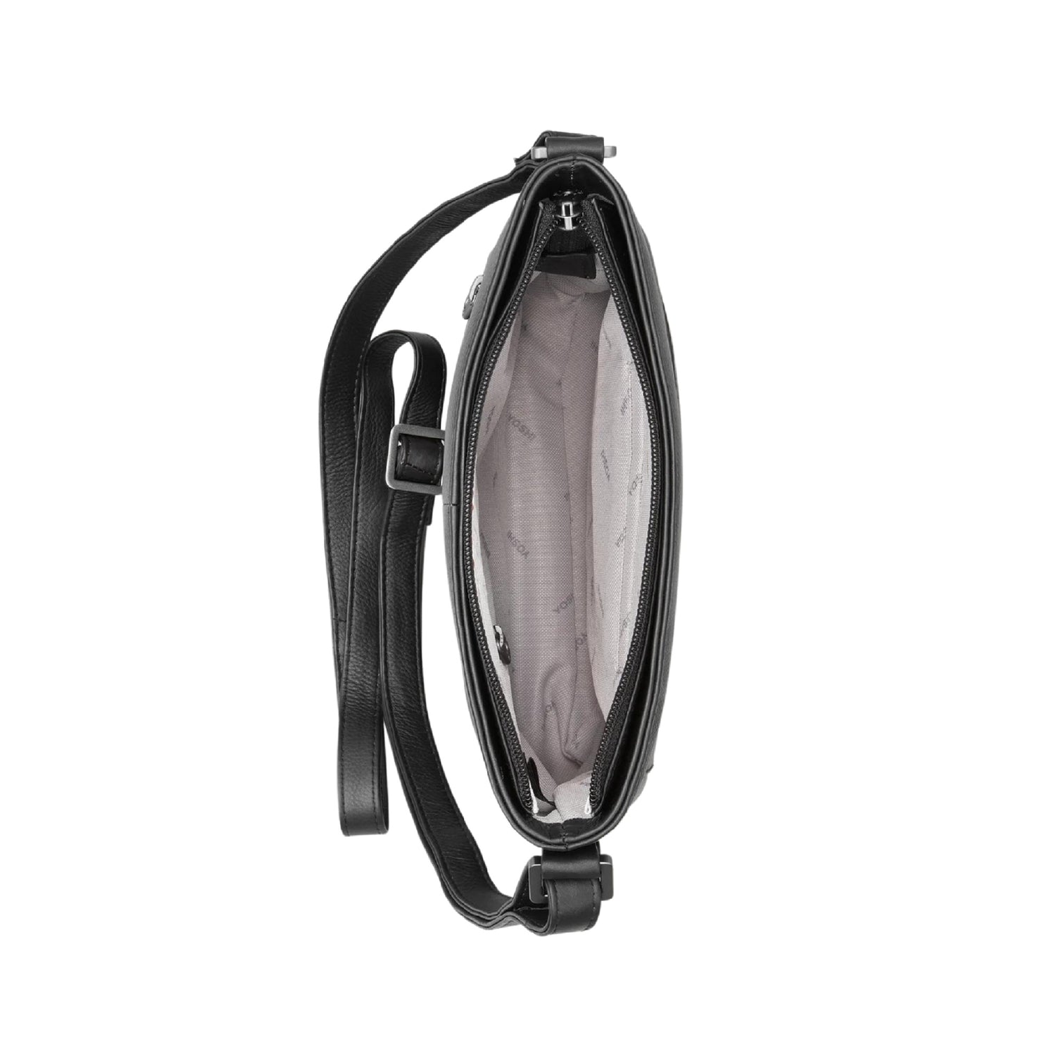 A delicate scattering of butterflies in flight adorn the front of this leather cross body bag and wallet. The vivid butterfly appliques adding a bold pop of colour to the classic black leather of this handbag which has a zip top fastening, and back outer zip pocket. This Yoshi Goods handbag has lots of inside storage space and pockets for all of your essentials and more.