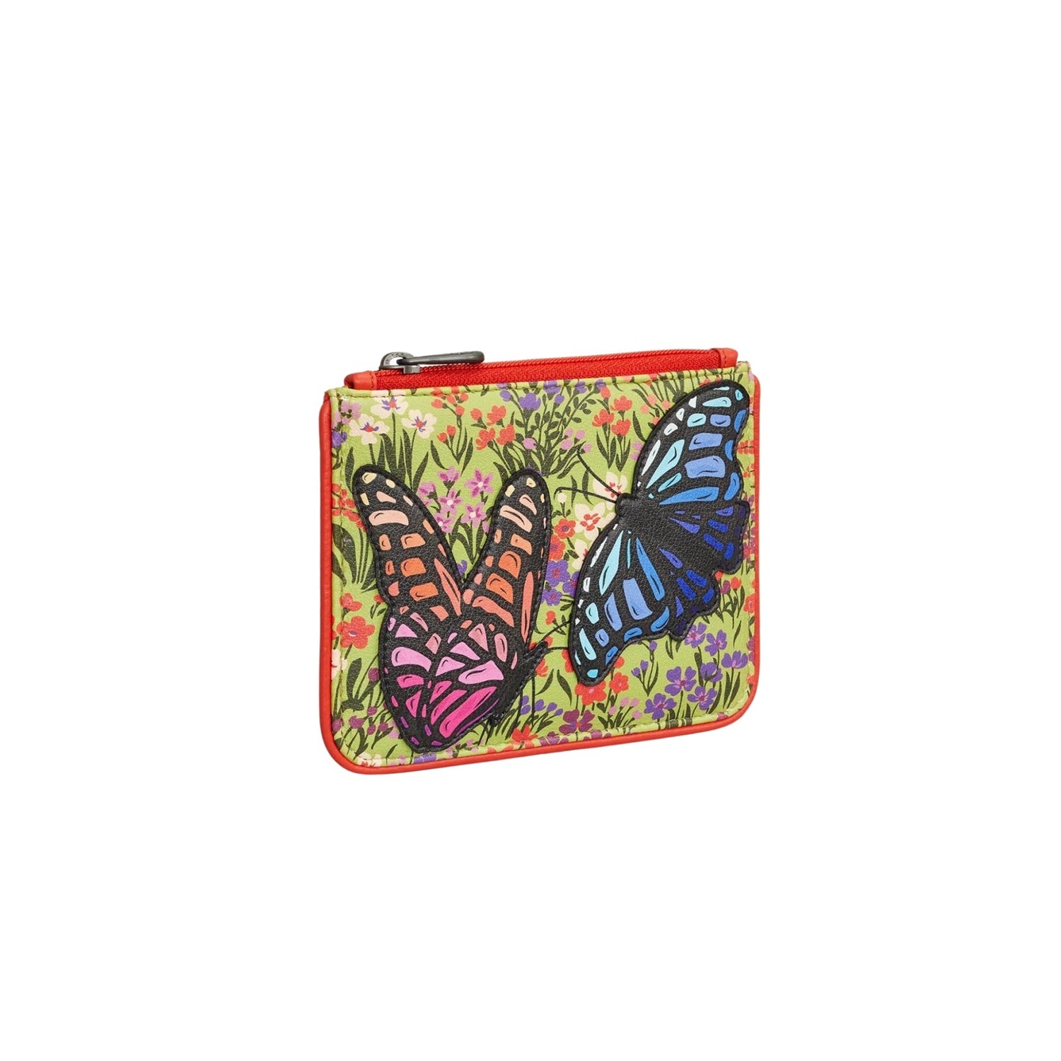 Two beautiful butterflies flutter about on the front of this leather purse from Yoshi Goods. This women's purse style has RFID Protection and is a lovely compact design which fits nicely into any pocket or bag with space for coins, cards, and bank notes etc.