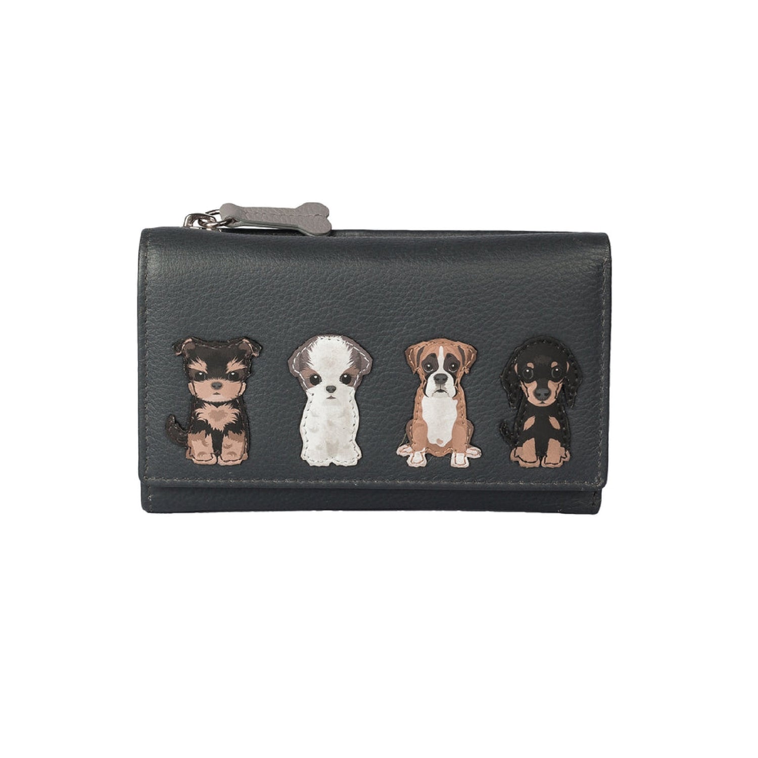 Best Friends Sitting Dogs Tri-Fold Leather Purse - Grey
