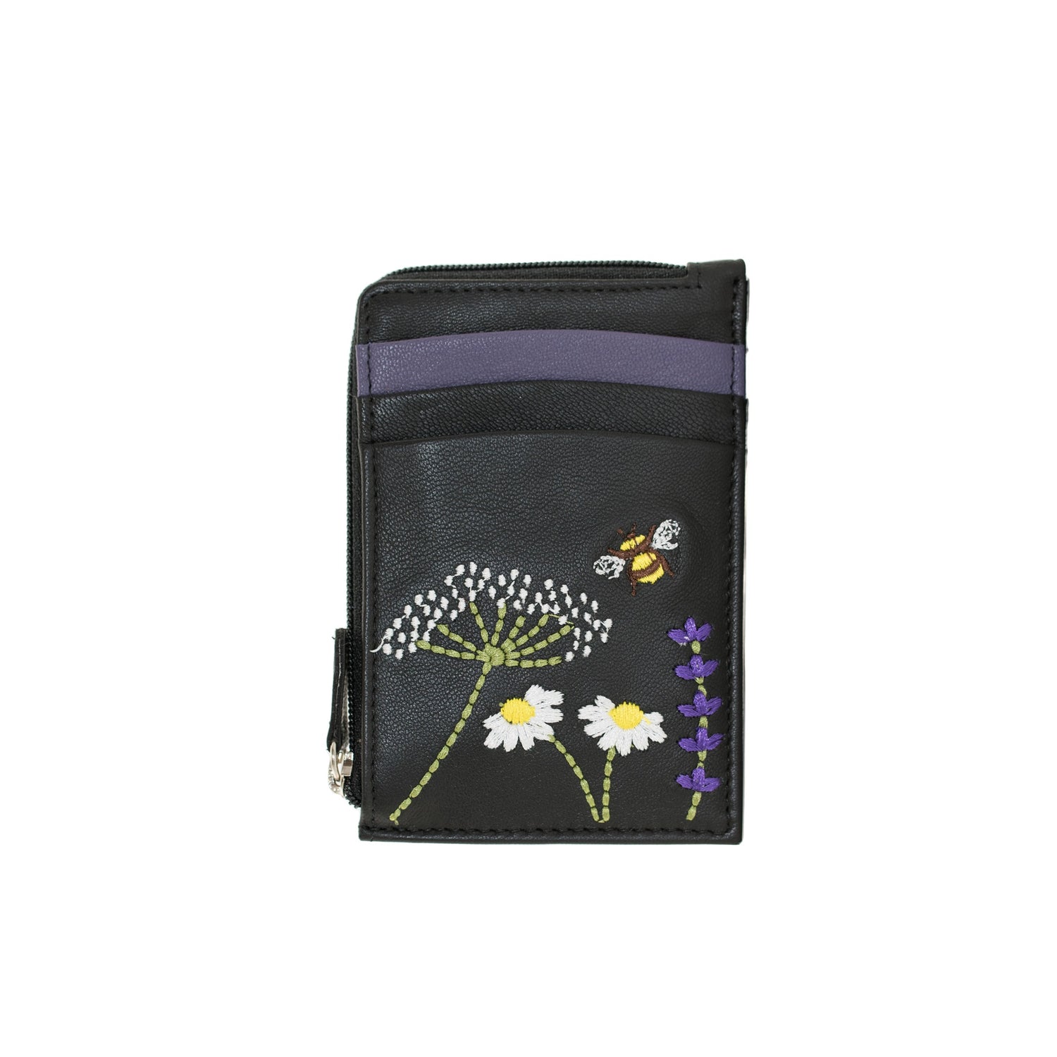 Created from genuine leather and decorated with beautiful embroidered flowers and bee.