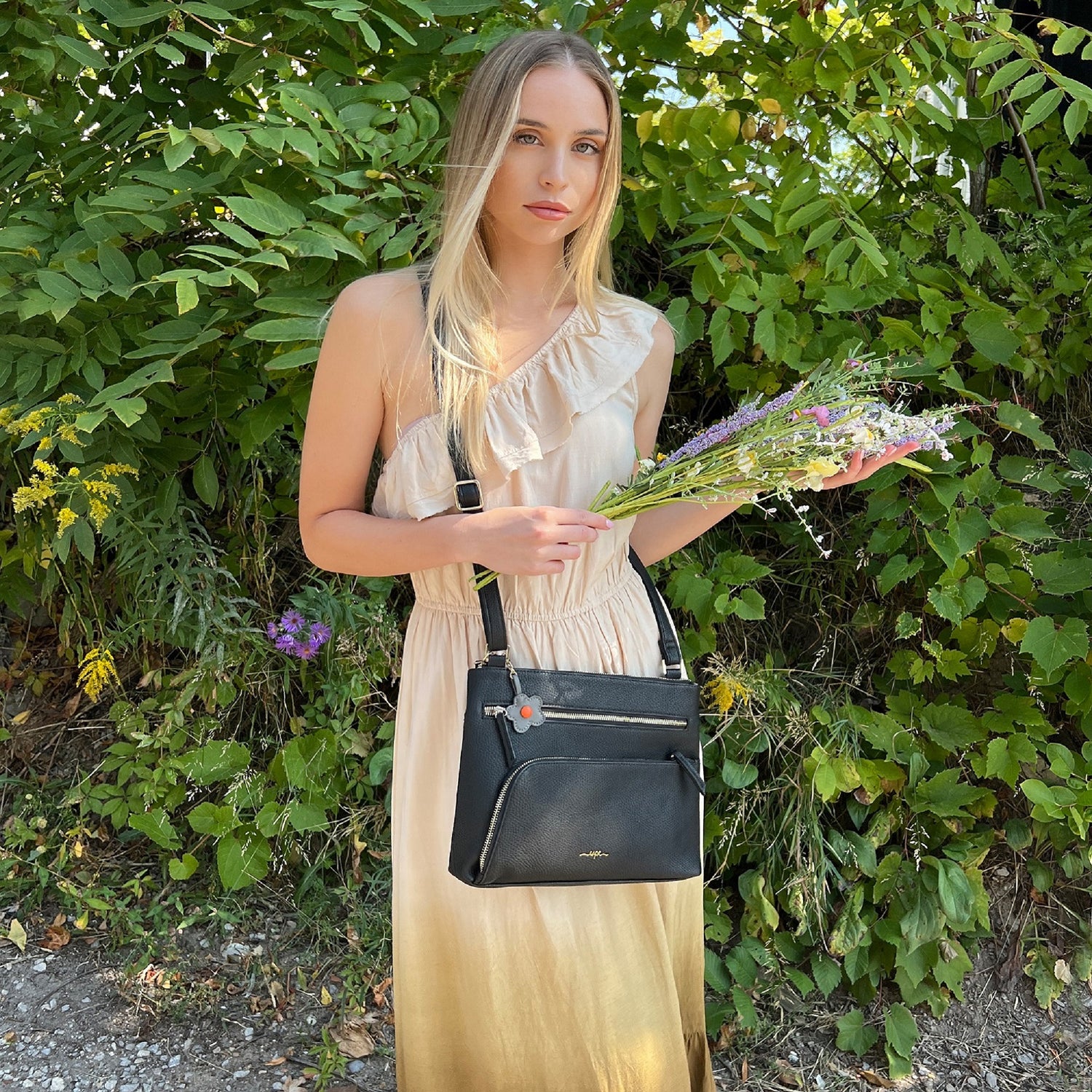 This on trend crossbody messenger bag has two easy access zip pockets on the front of the bag to carry your phone and essentials. Made from soft pebbled vegan leather this crossbody bag is comfortable to wear everyday.