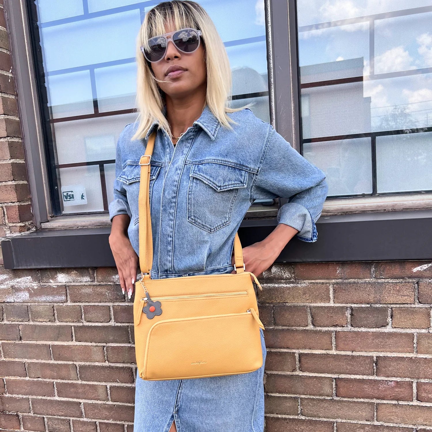 This on trend crossbody messenger bag has two easy access zip pockets on the front of the bag to carry your phone and essentials. Made from soft pebbled vegan leather this crossbody bag is comfortable to wear everyday.