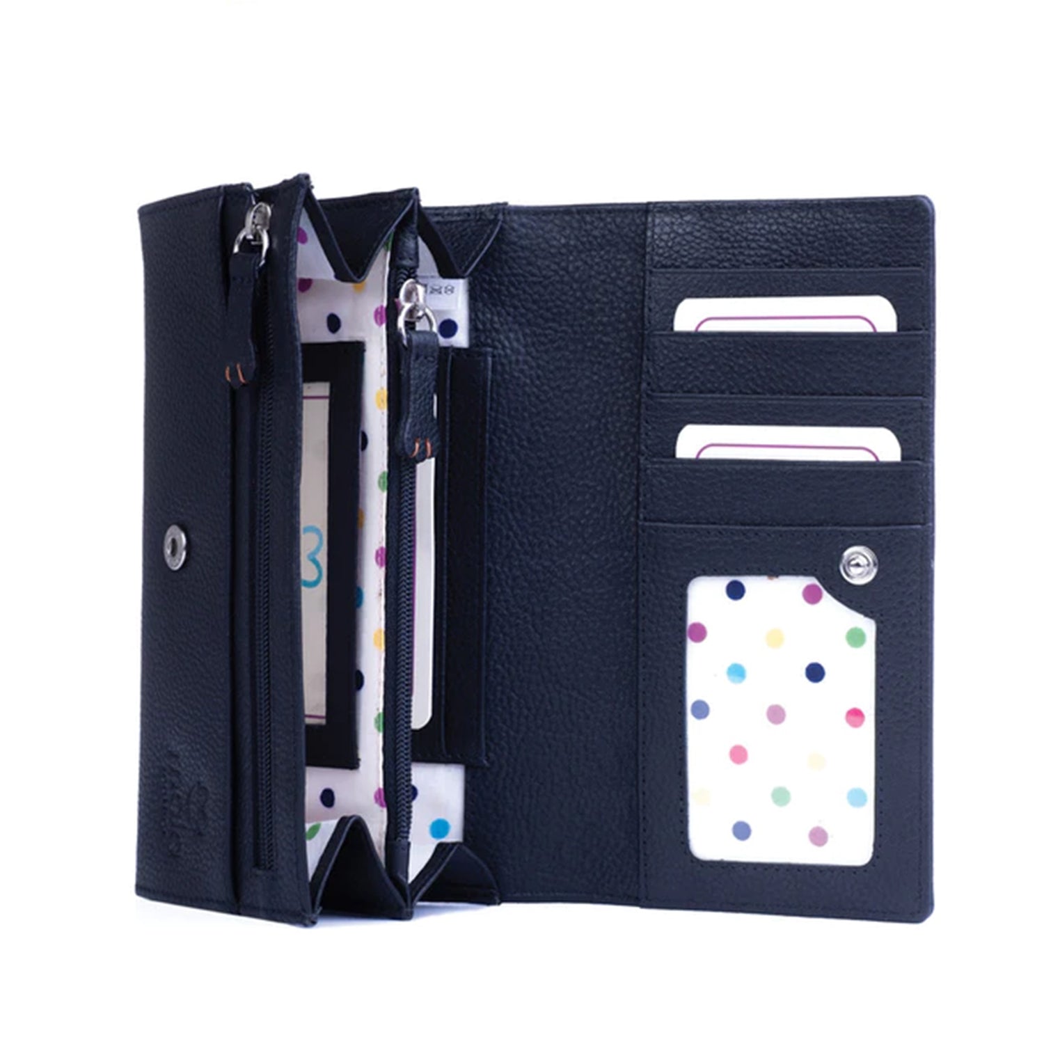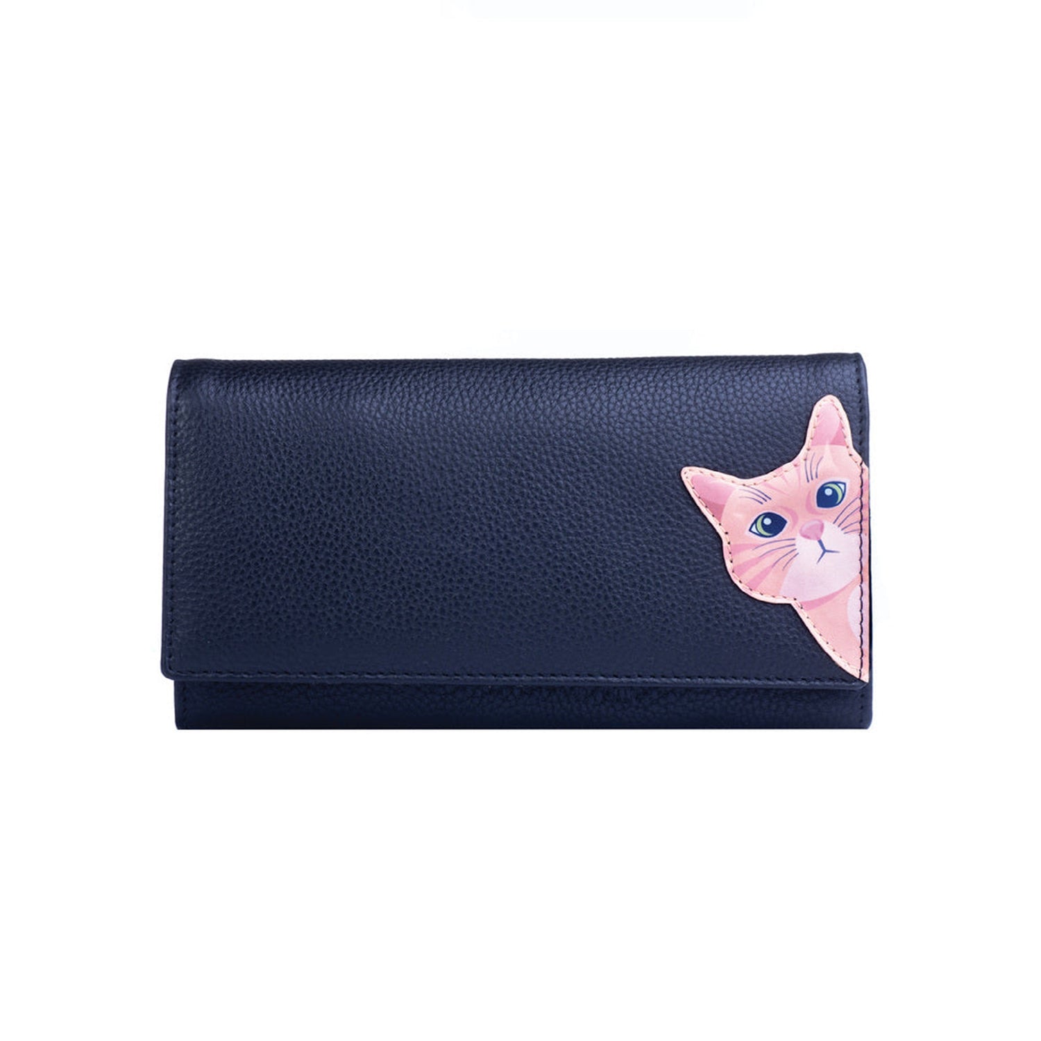 This super soft leather matinee style purse from Mala Leather is fun and very practical. Handcrafted from premium leather, with a cheeky cat design leather purse with Cleo the cat applique design on the front and back of this leather purse which is available in 3 colours. This purse holds bank notes, numerous cards, coins and has a useful ID window for passes. This Mala Leather purse consists of RFID protection which guards against un-authorised devices when closed.