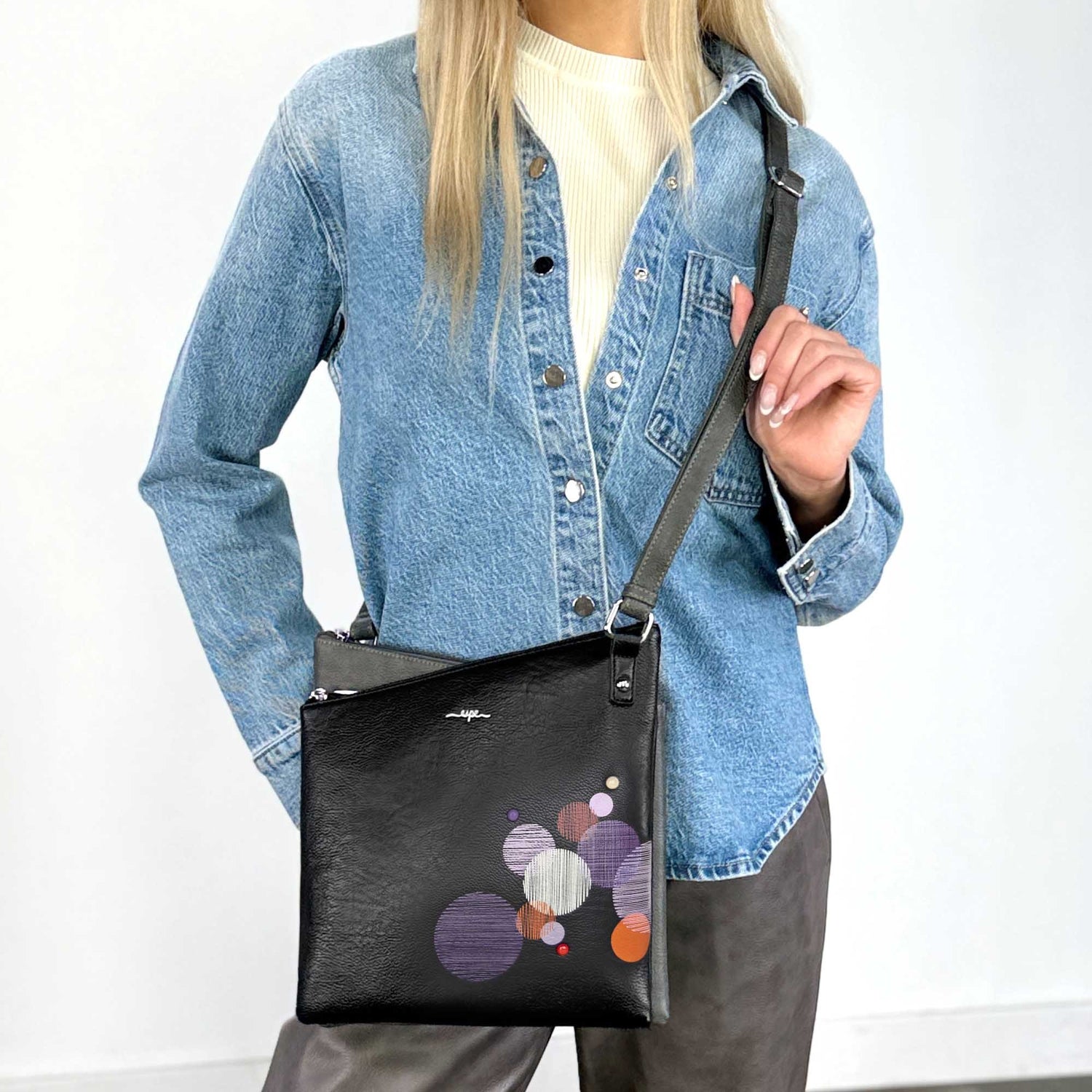 - Adjustable cross-body strap