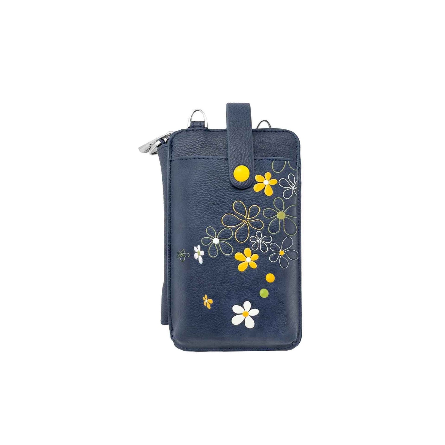 The daisy smartphone phone carrier has a cute daisy motif with pop of yellow flowers brings some sunshine to your outfit. The integrated wallet is a game changer! The perfect go to bag when you just need your phone and wallet for easy hands free outings.