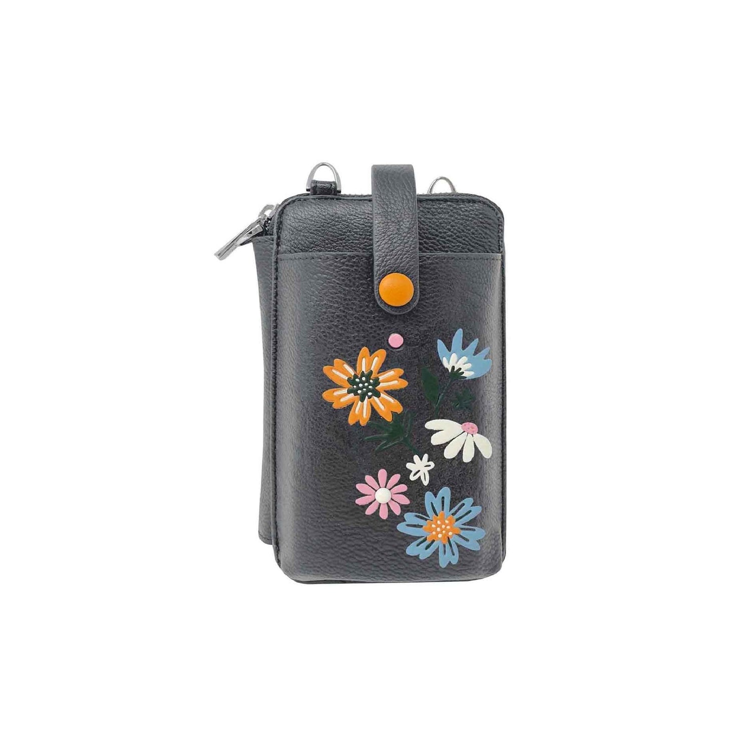 The Elsa smartphone phone carrier has a cute daisy motif with pop of yellow flowers brings some sunshine to your outfit. The integrated wallet is a game changer! The perfect go to bag when you just need your phone and wallet for easy hands free outings.