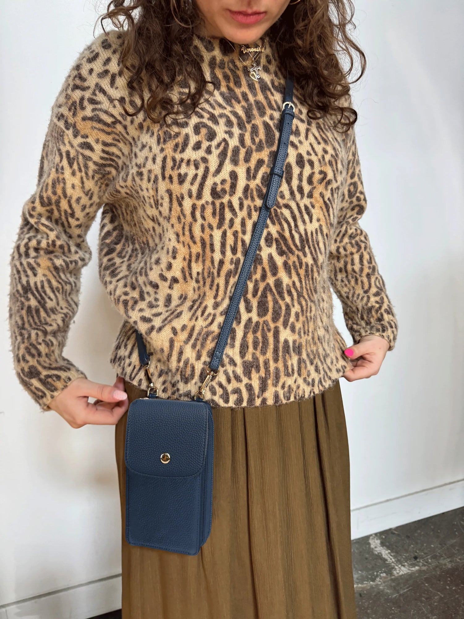The Erin I mini is a great crossbody travel companion! The front flap opens up to a spacious phone compartment and the back zipper compartment has room for 10 cards.