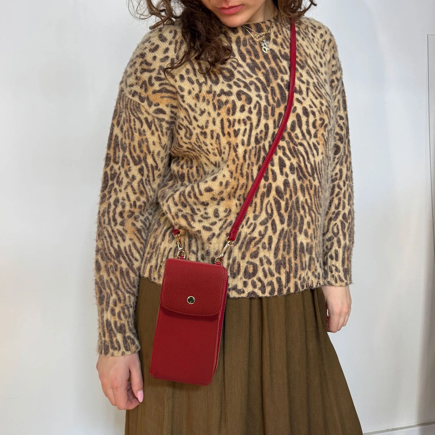 The Erin I mini is a great crossbody travel companion! The front flap opens up to a spacious phone compartment and the back zipper compartment has room for 10 cards.