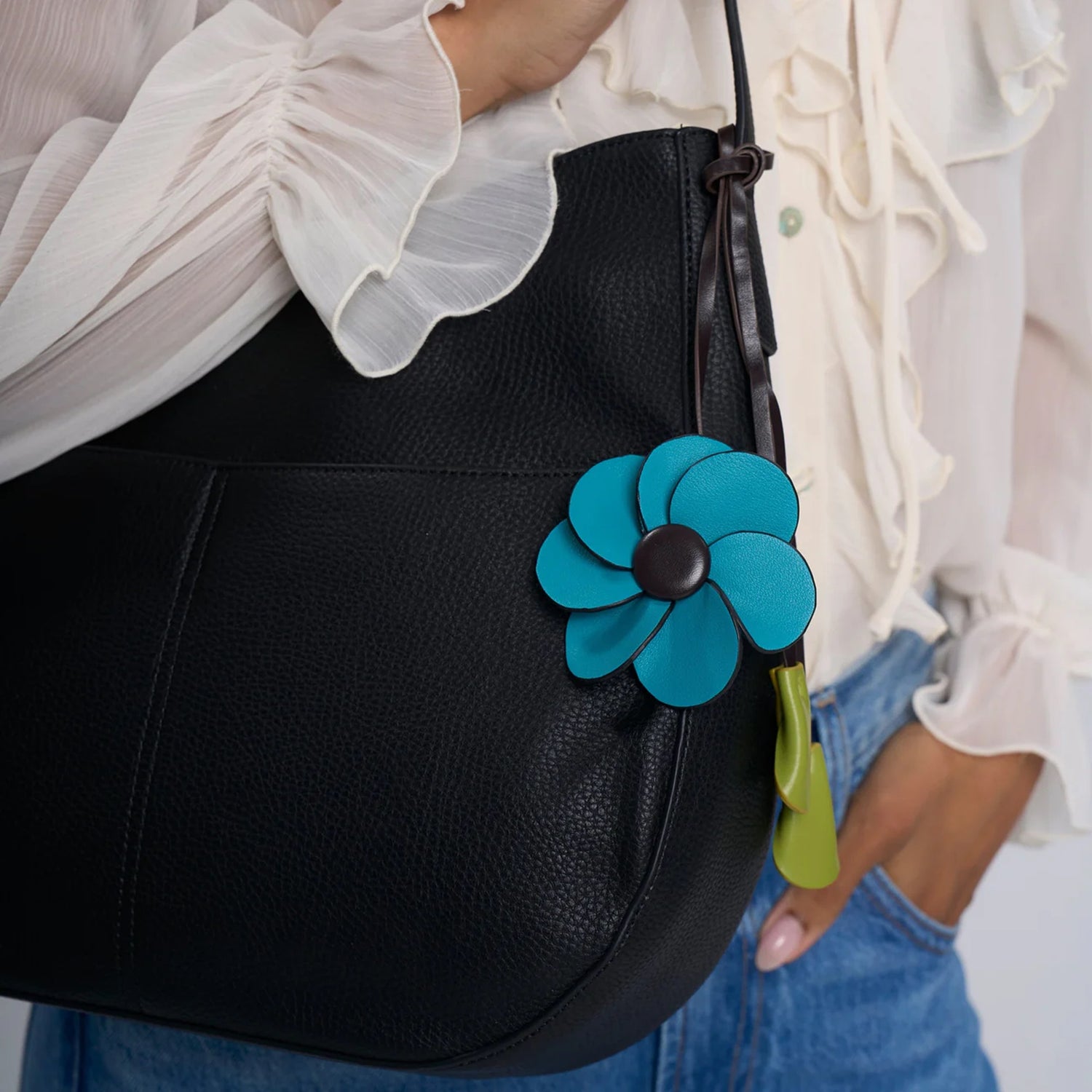 Accent your favorite handbag with this lovely 3-dimensional flower and leaf charm. Available in 4 colours.