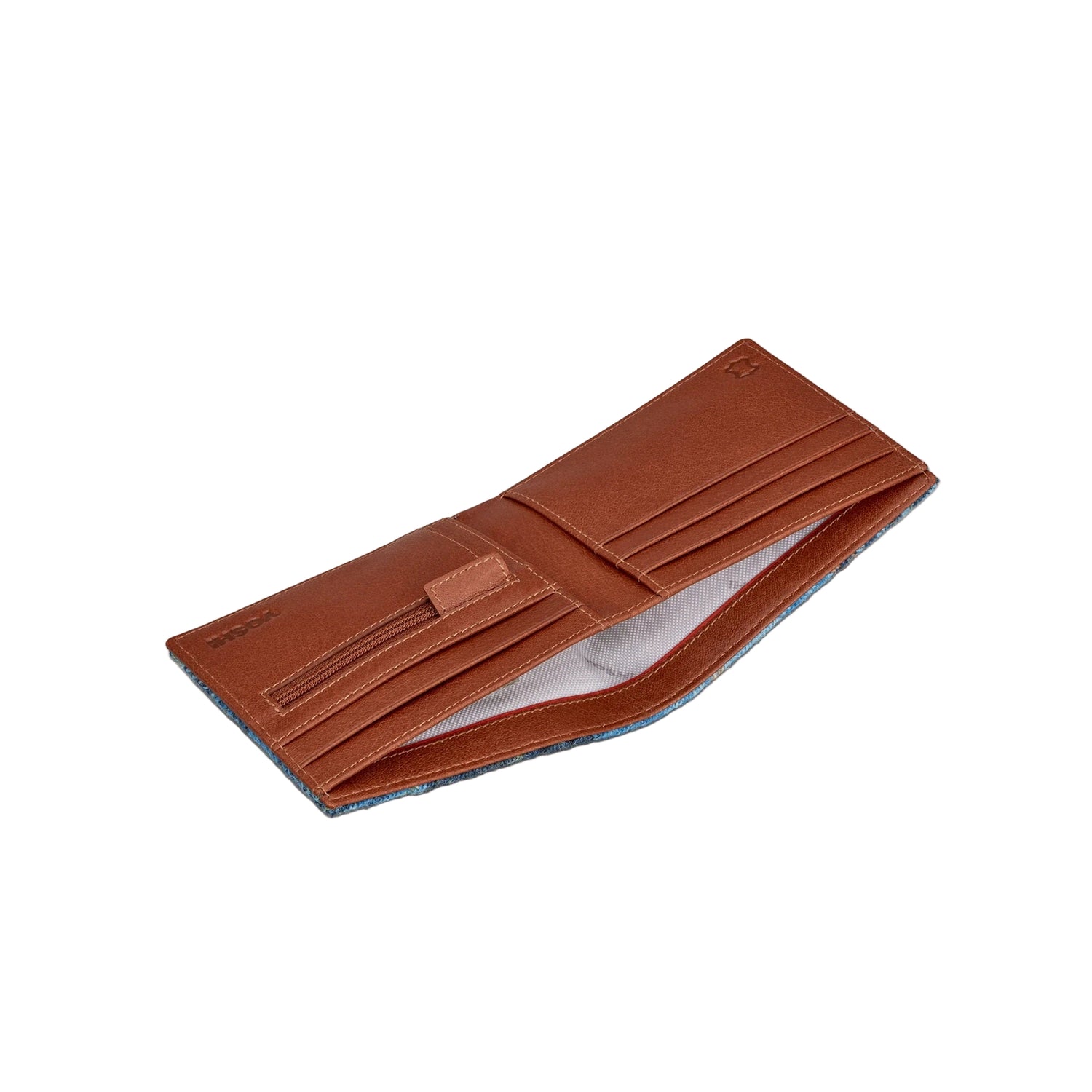Highland Cow Harris Tweed Men's Leather Wallet - Blue