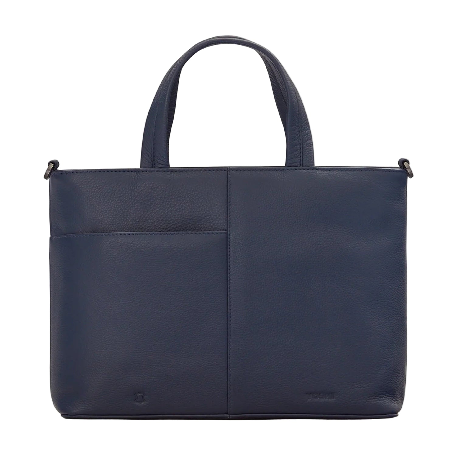 Our Jane Austen soft navy leather ladies multiway grab bag has comfortable grab handles and also a detachable / adjustable long strap. This women's handbag is from our Bookworm range and has lots of storage space and pockets in the main zip top compartment, and a useful back outer slip pocket.