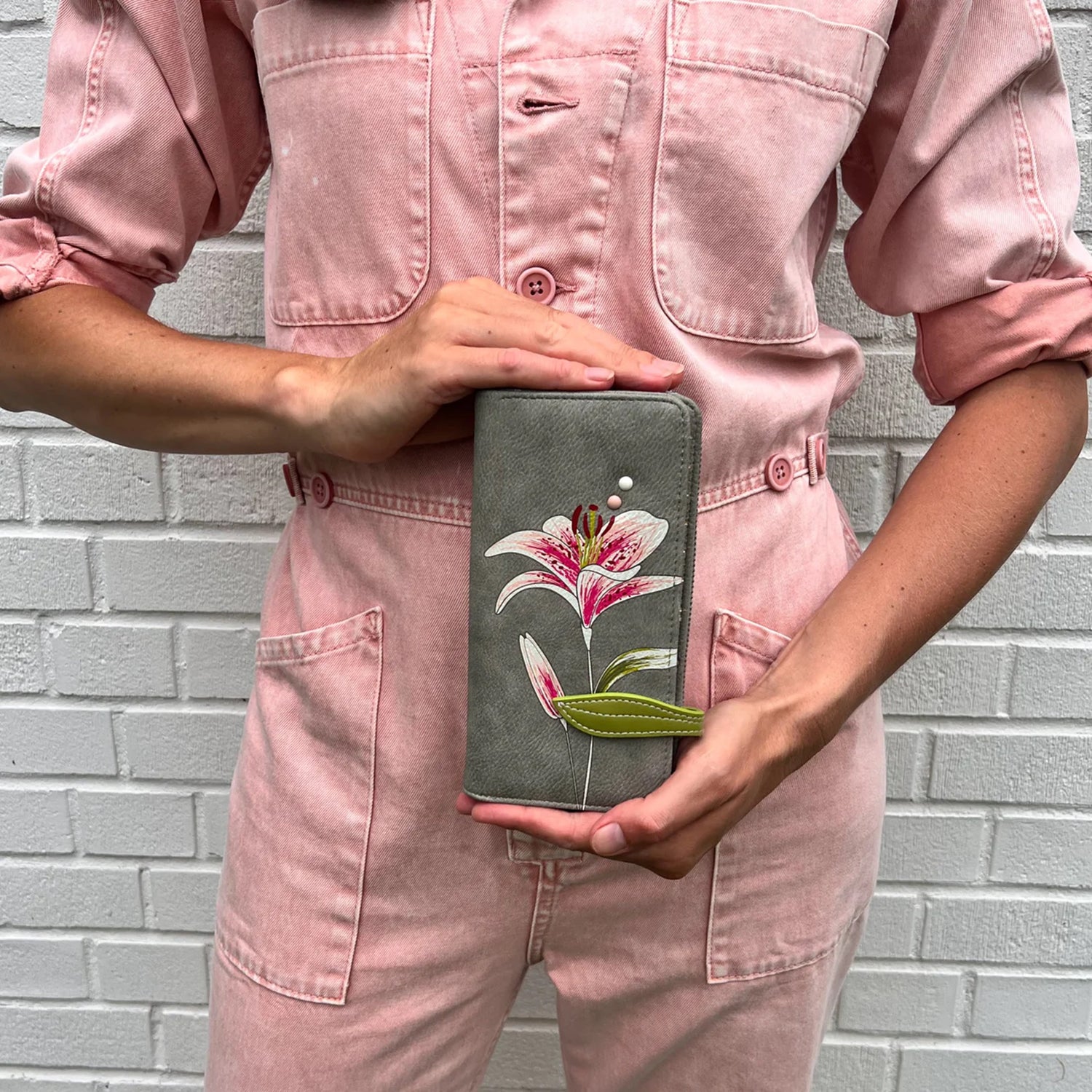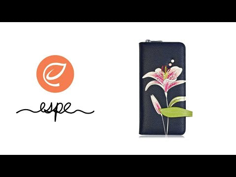 Carry the perfect clutch wallet with a unique artistic applique of a blooming Lily. The Liliana CL has a zip around compartment for safety with lots of card slots and zippered change pockets.
