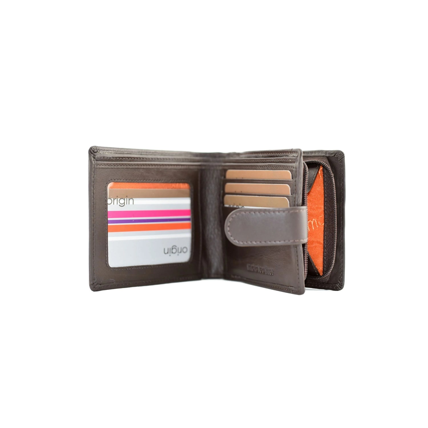 Neat and compact, this Origin soft leather wallet from Mala Leather holds 3 cards, has an internal ID window, double note section and outer zipped change tray.