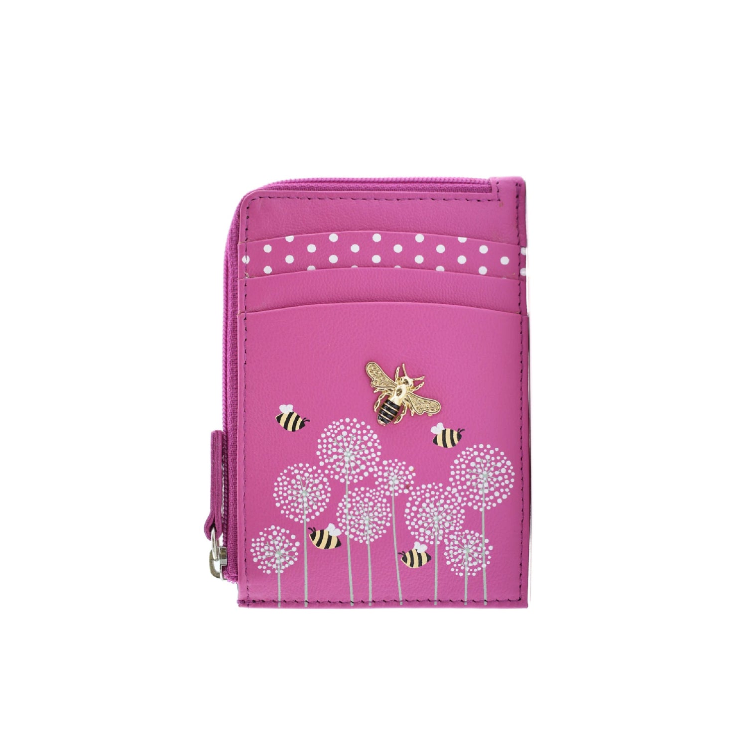 Moonflower Leather Card & Coin Bee Holder - Pink