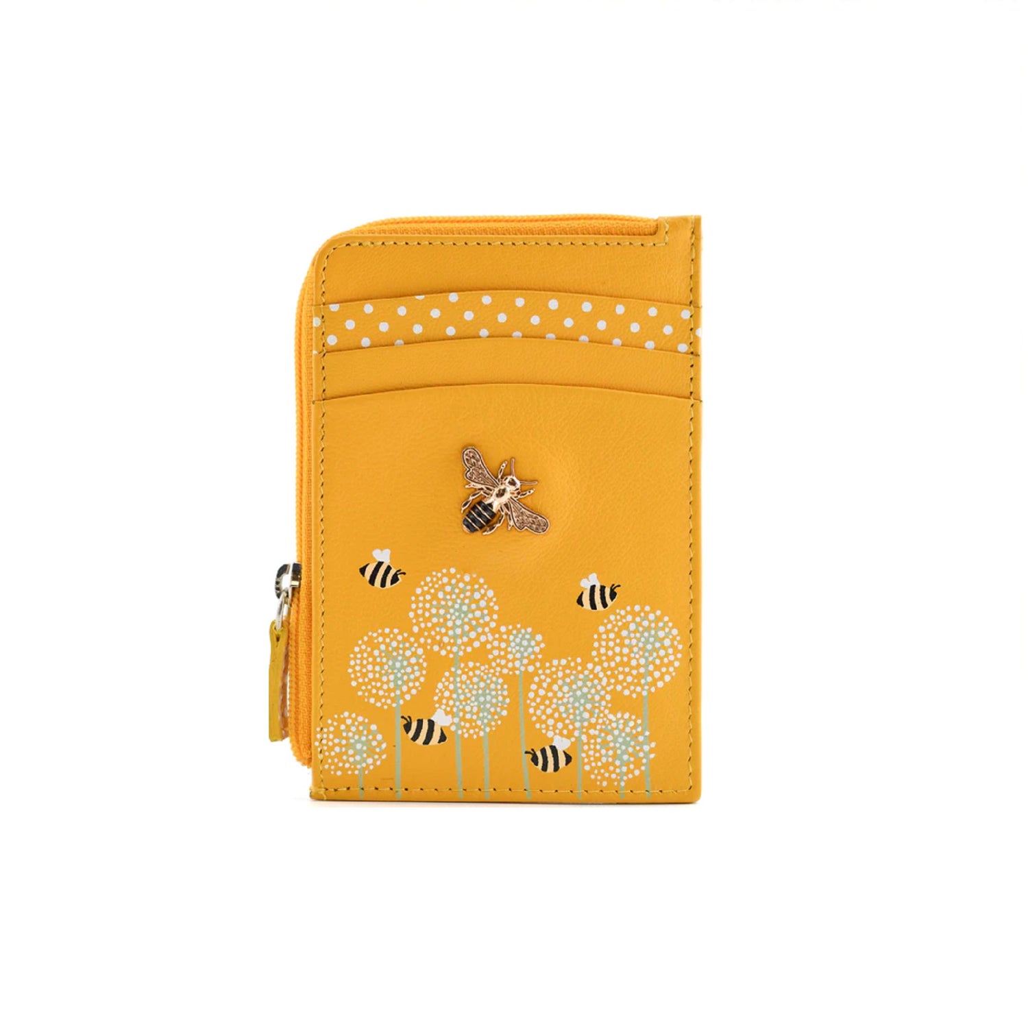 Moonflower Leather Card & Coin Bee Holder - Yellow