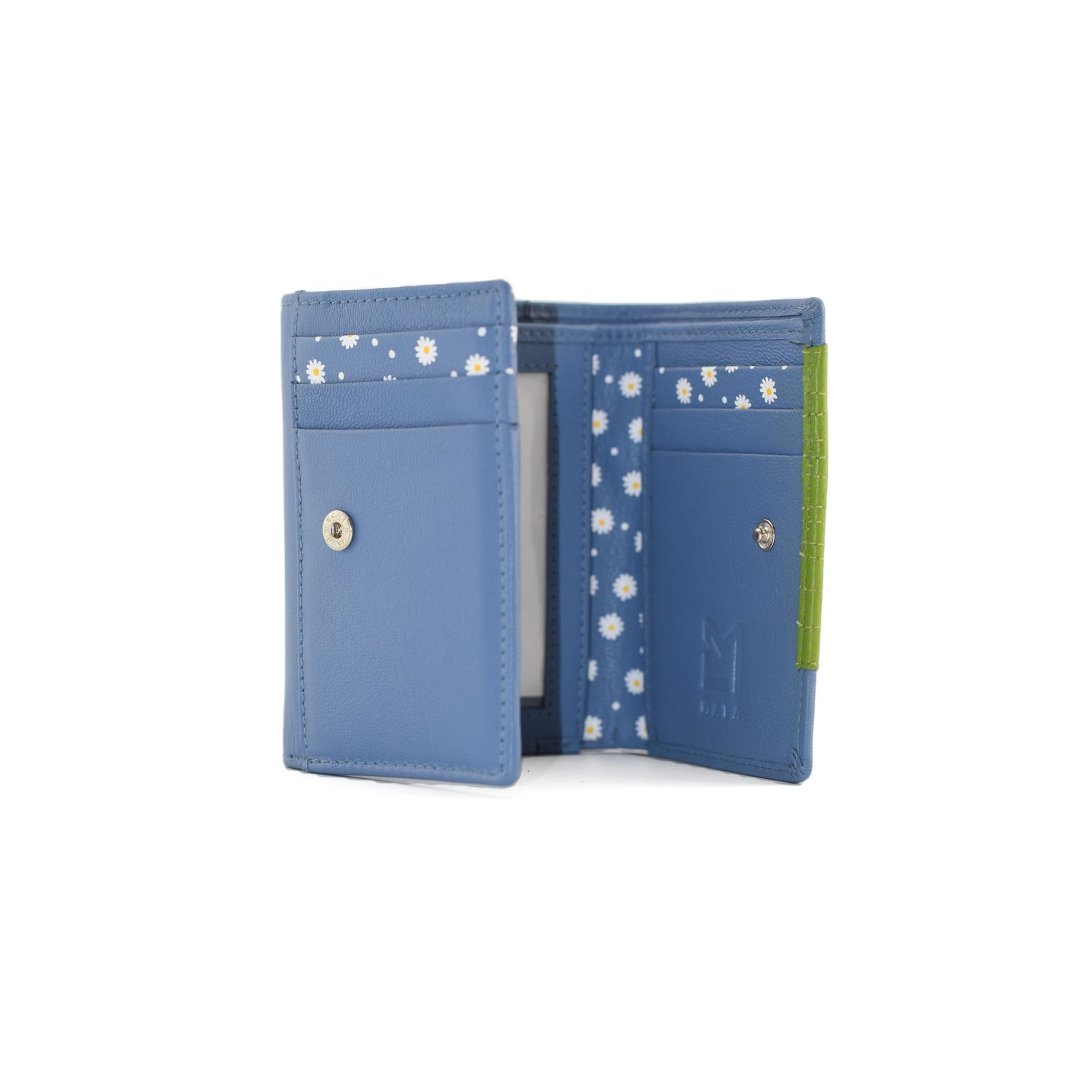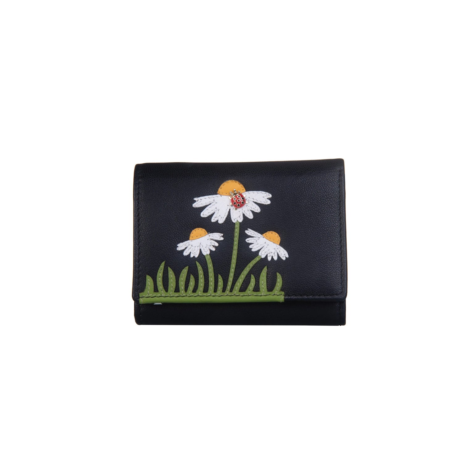 Perfect for smaller bags, this neat tri fold purse from Mala Leather is bright and cheerful and holds more than you think. Handcrafted from genuine soft leather and decorated with applique flowers and cute metal ladybird fitting.
