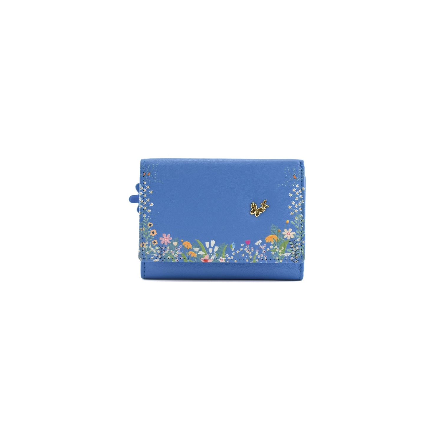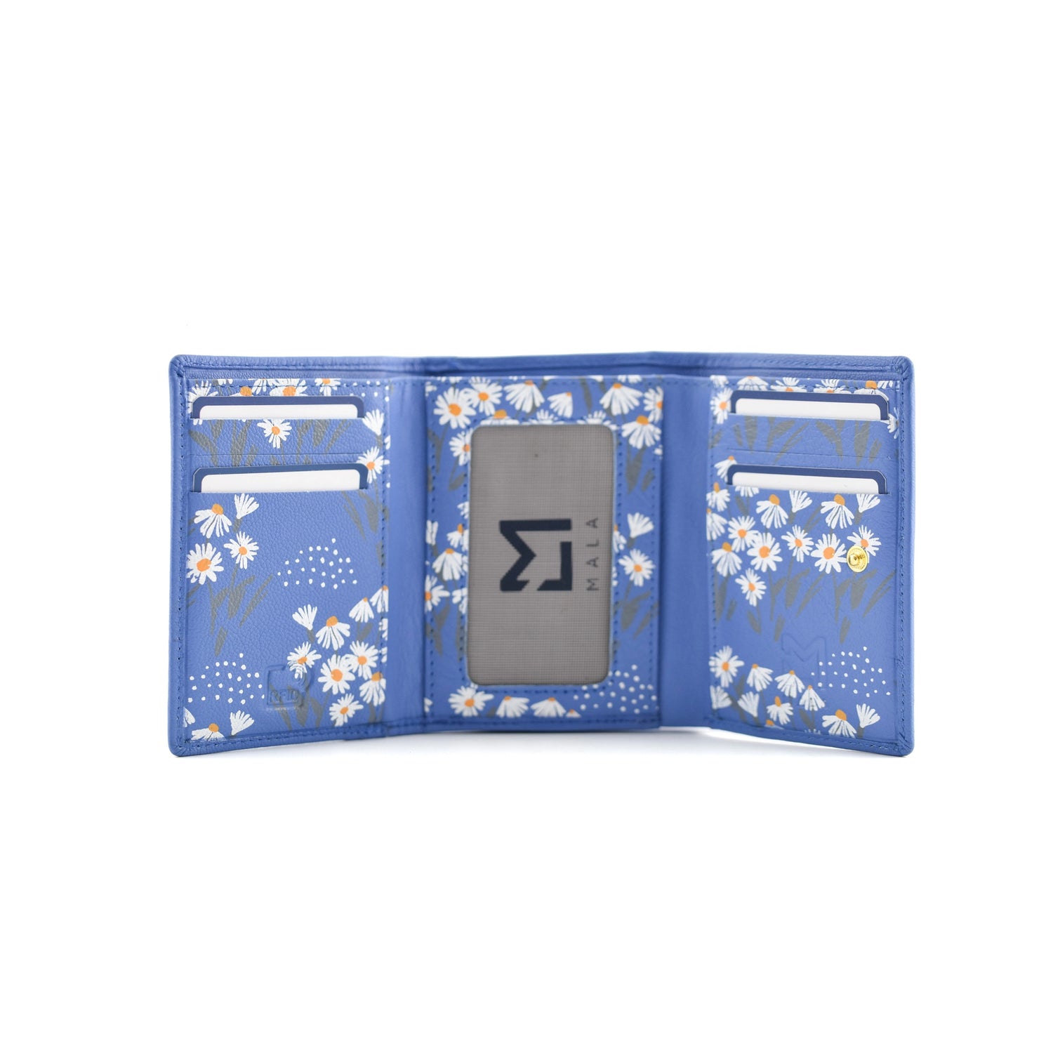 Ideal for smaller bags, this pretty floral tri fold purse from Mala Leather is compact and practical. Handcrafted from genuine soft leather and decorated with printed flowers and delicate gold butterfly fitting.