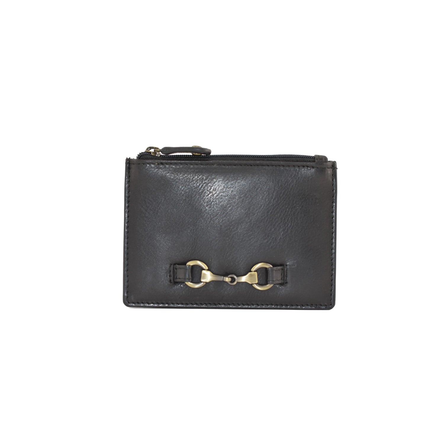 An equestrian inspired leather coin purse from Mala Leather in a veg tanned leather with an antique brass snaffle bit fitting on the front. This simple and slim, perfect little purse will fit into your pocket and the smallest of handbags. Crafted from soft leather and holds your loose change and cards all together.