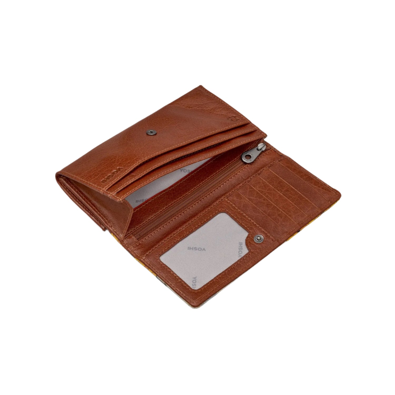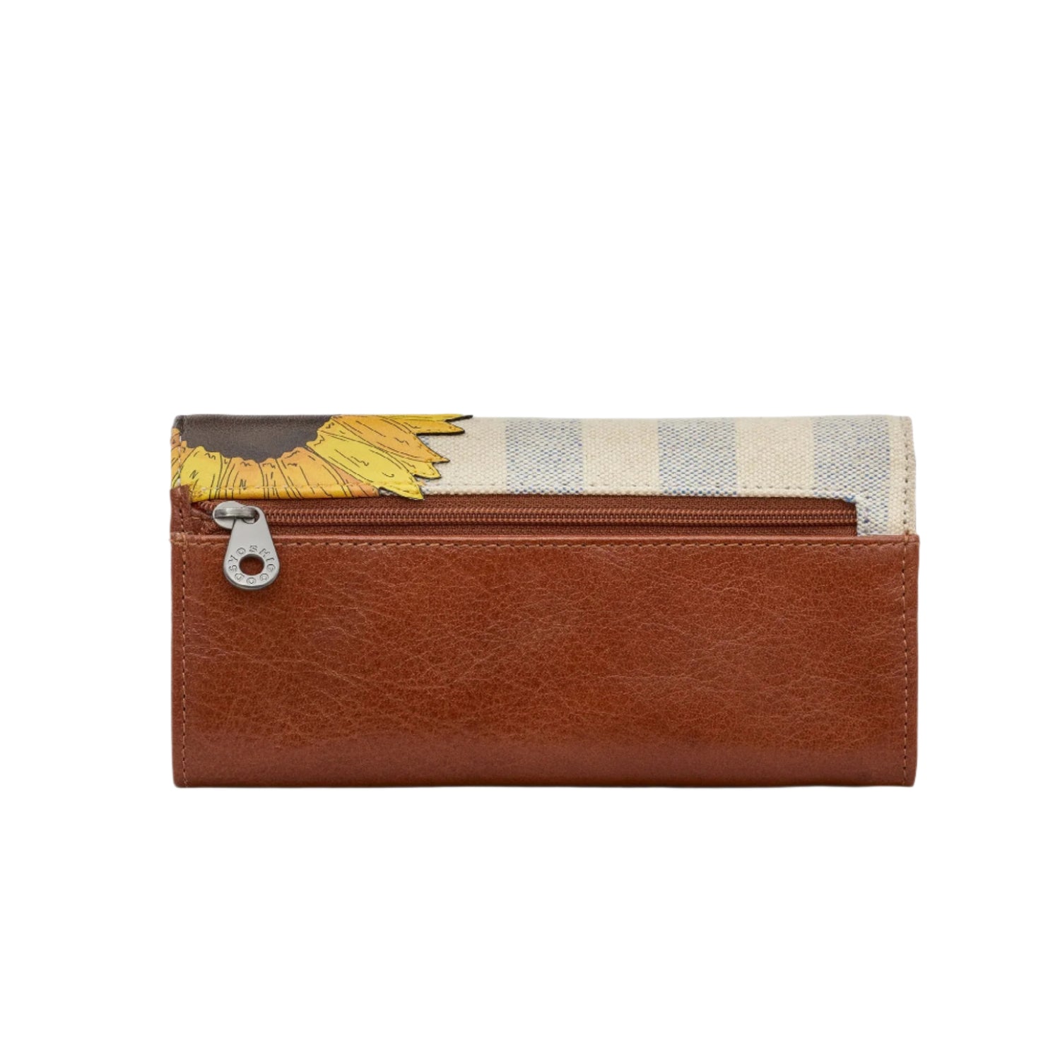 This Sunflower Bloom leather and canvas matinee purse from Yoshi Goods has RFID protection and space for your cards, coins, notes, and ID. With a fun sunflower scene on a striped canvas front, this is ideal for bringing a spark of brightness to any day.