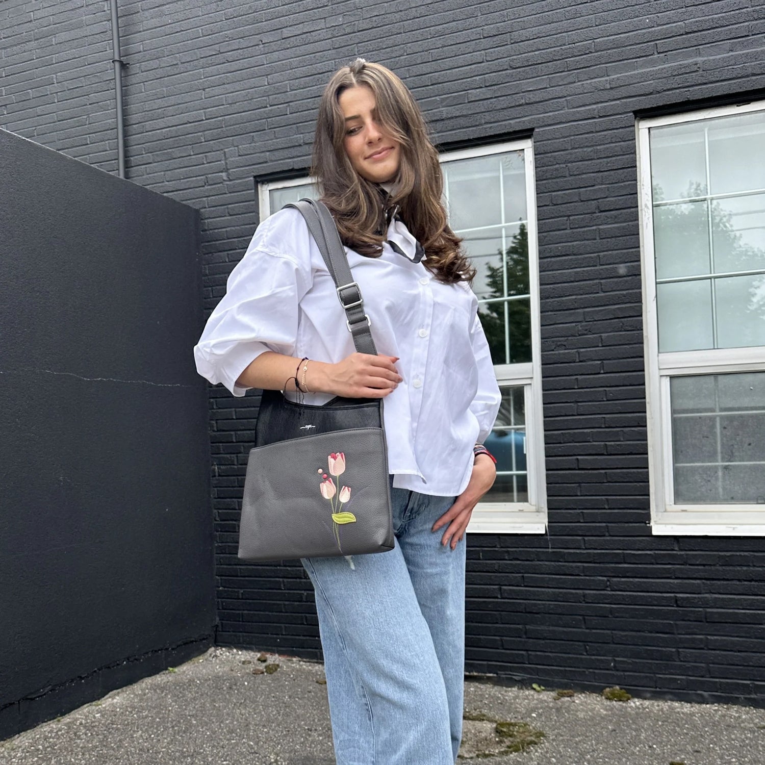 The Tulip messenger bag is an Snazzy Shop favorite! It has a sleek and spacious design with lots of compartments to keep you organized. With blooming tulip motif adoring the front this bag it is the perfect everyday go-to style.