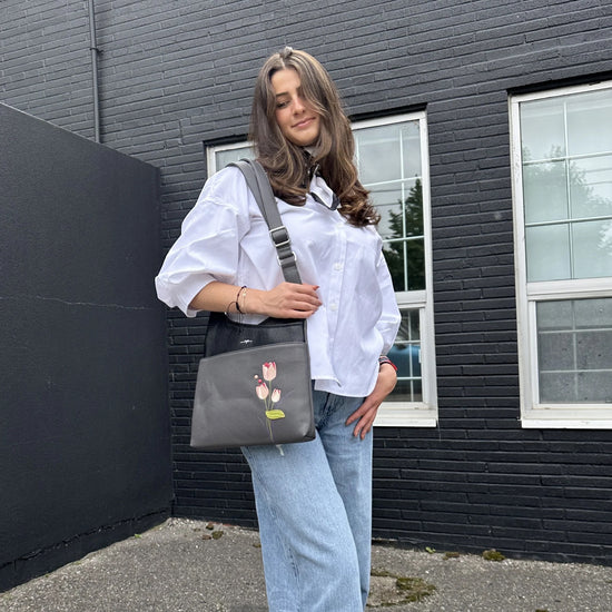 The Tulip messenger bag is a Snazzy Shop favourite! It has a sleek and spacious design with lots of compartments to keep you organized. With blooming tulip motif adoring the front this bag it is the perfect everyday go-to style.